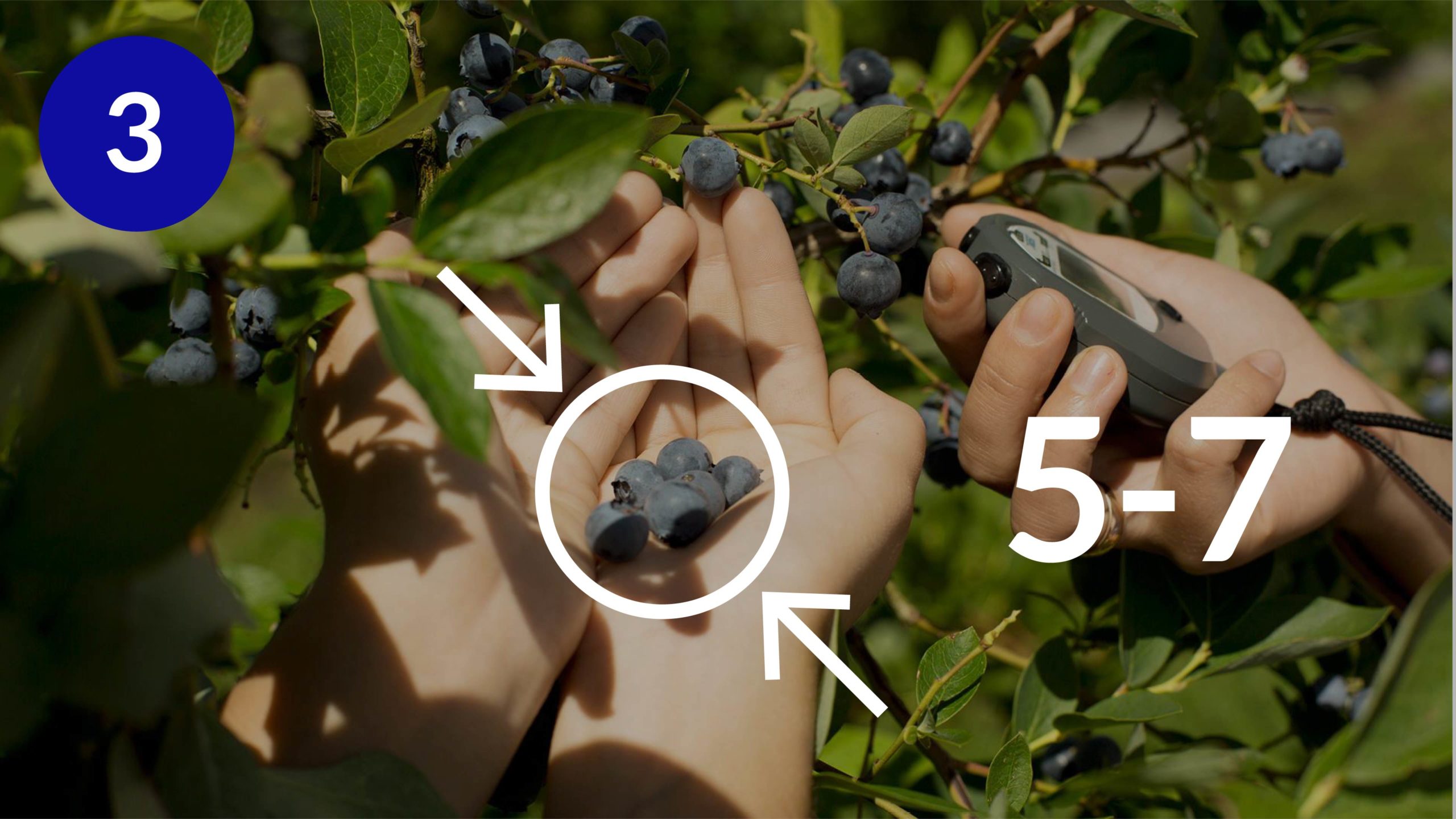 Dla zachowania nalotu i uniknięcia uszkodzeń oraz wypadania jagód z dłoni, w rękach trzymamy jednocześnie nie więcej, niż 5-7 borówek.